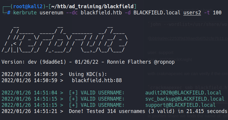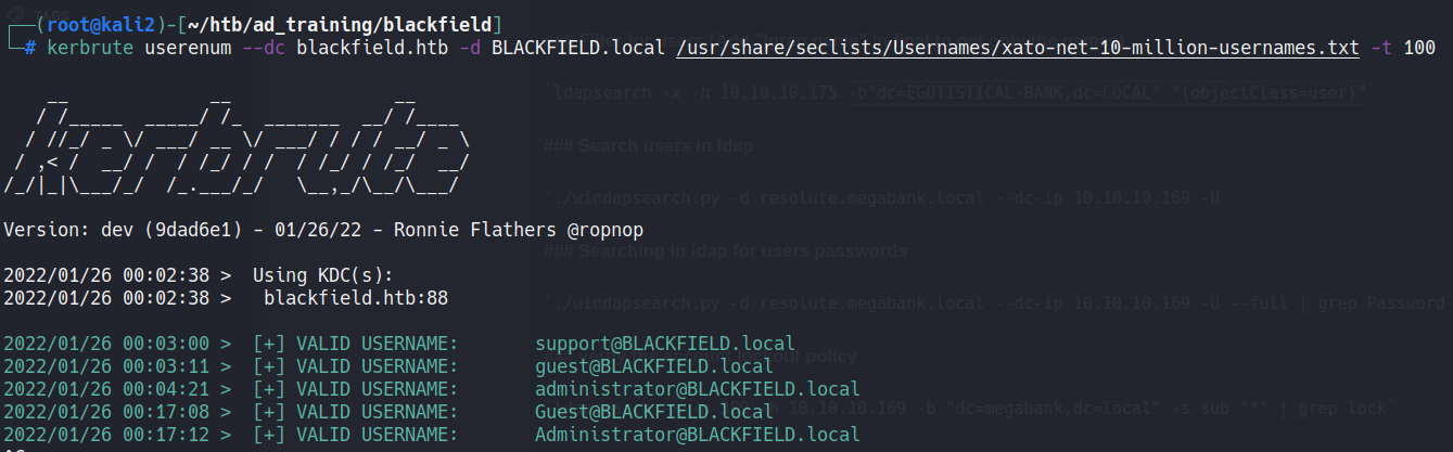 2022/01/26 00:17:12 > [+] VALID USERNAME: Administrator@BLACKFIELD.local