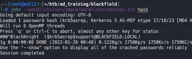 2022/01/26 00:03:00 > [+] VALID USERNAME: support@BLACKFIELD.local