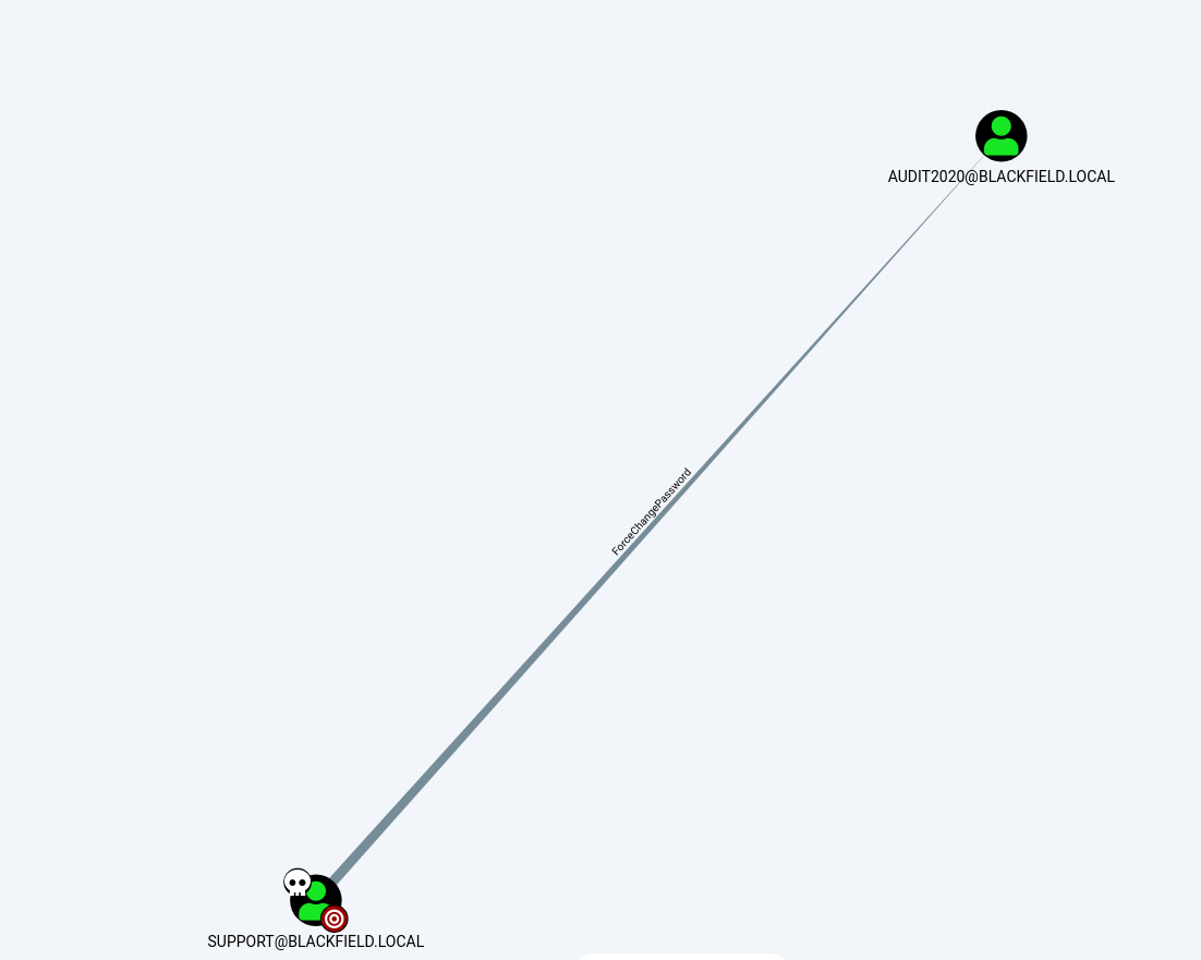 With bloodhound we see that the support user can force the password change of the audit2020 user.