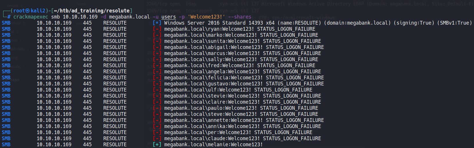 Trying execute a password spray in smb we discover that the password pertence to melanie.