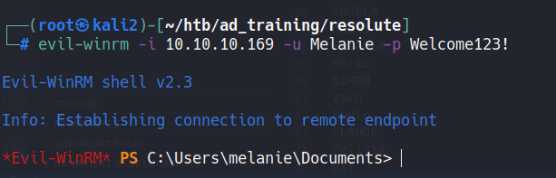 evil-winrm -i 10.10.10.169 -u Melanie -p Welcome123!